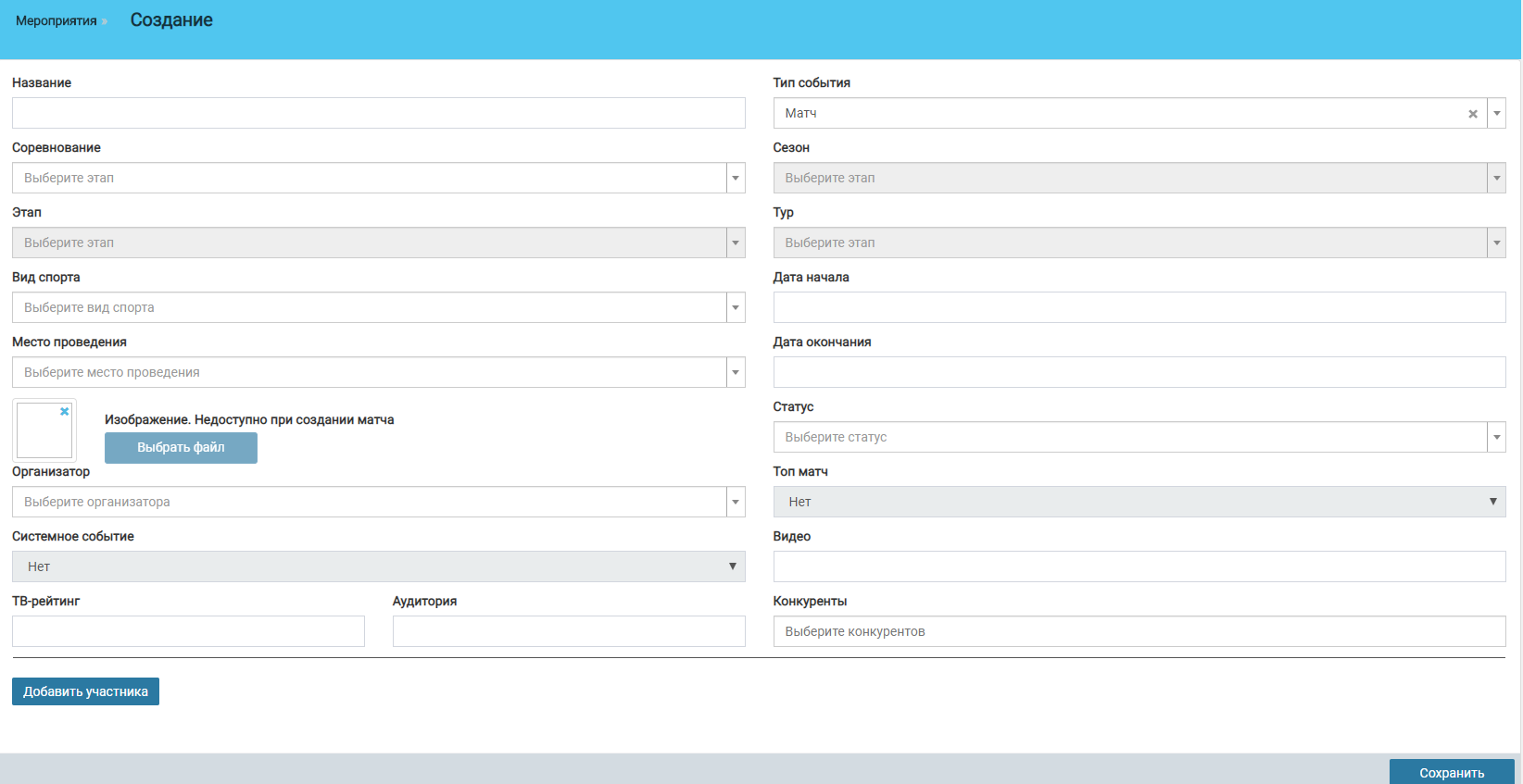 Для добавления мероприятия вручную необходимо нажать на кнопку «Добавить»После нажатия на эту кнопку открывается форма для ручного ввода данных о мероприятии.
