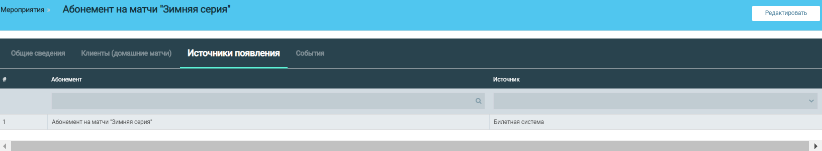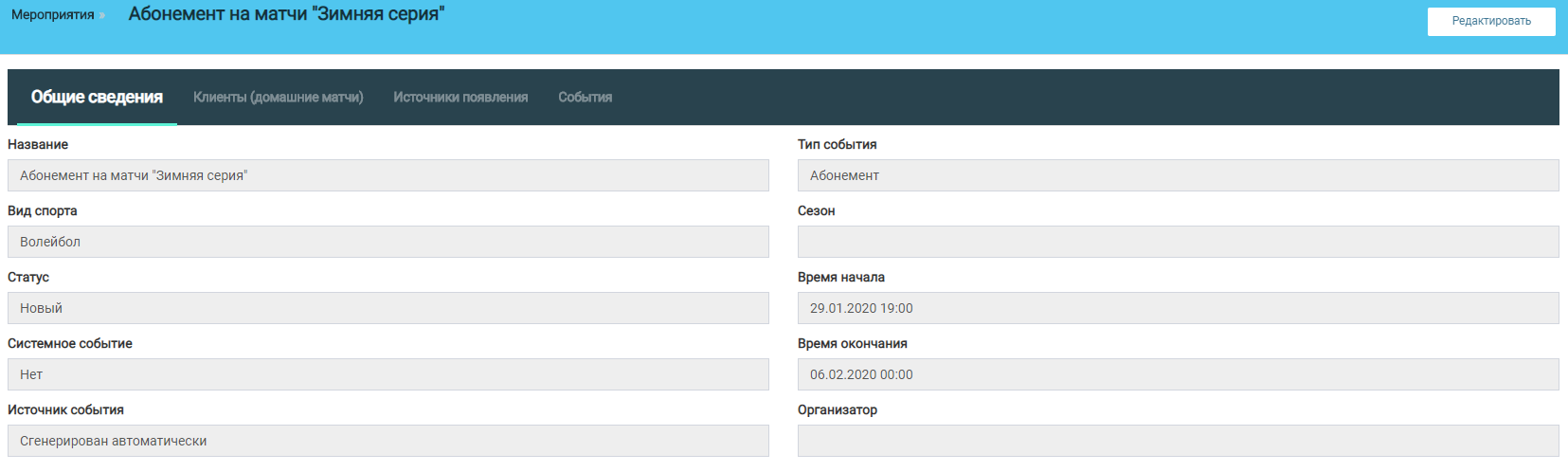 Абонемент или абонементное событие – это событие, которое отображает покупки абонементов на определенный сезон.