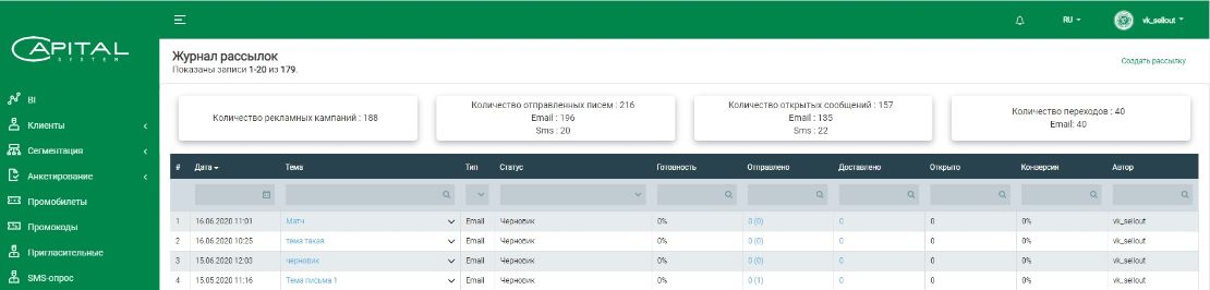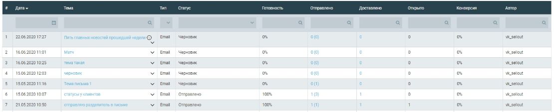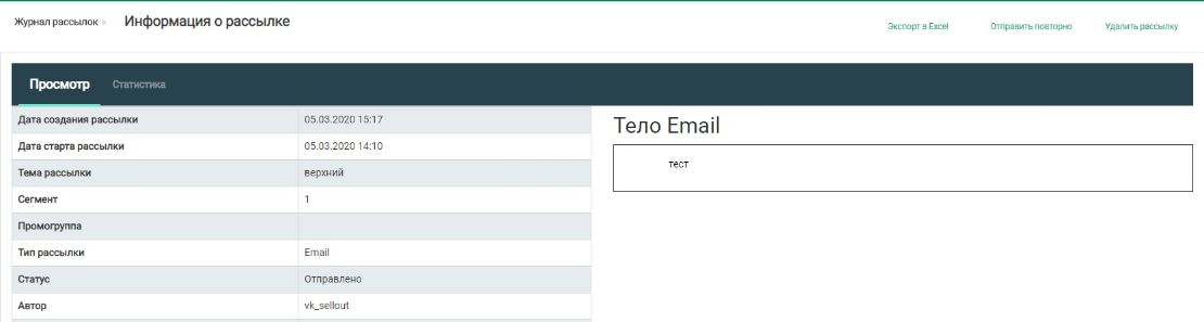Чтобы заново запустить ранее отправленную рассылку, необходимо зайти в журнал рассылок и открыть нужную рассылку.