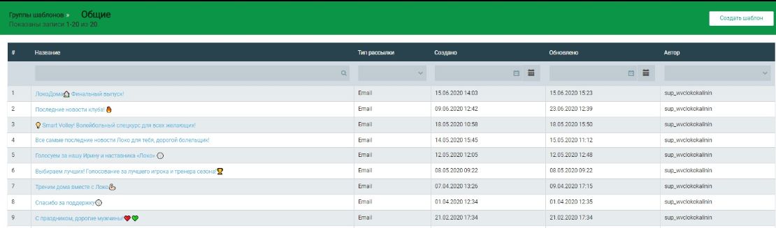 Для того, чтобы скачать ранее созданный шаблон рассылки необходимо перейти в раздел «Коммуникации» — «Шаблоны».Далее следует выбрать нужную группу шаблонов