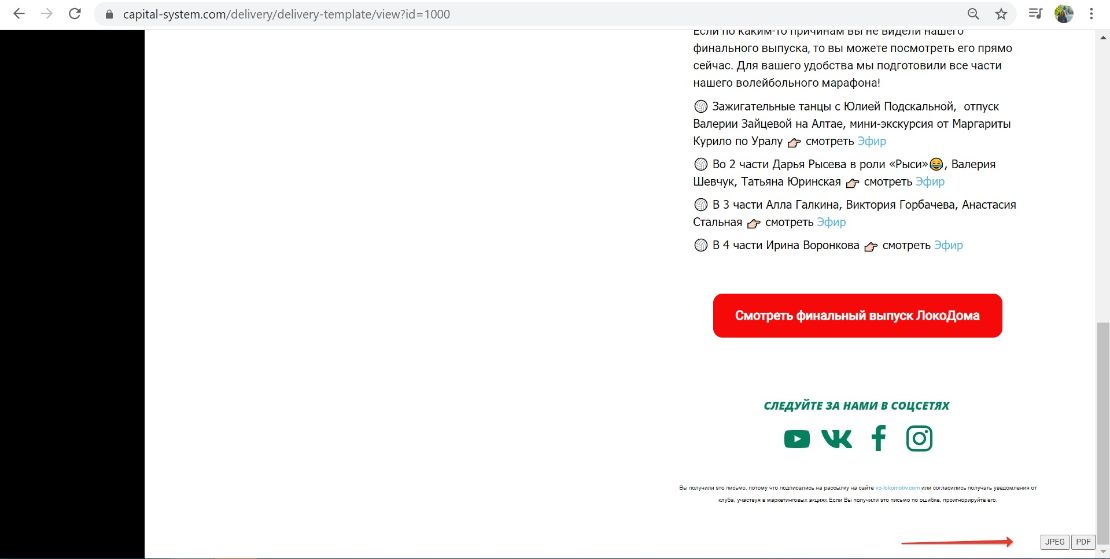 После выбора нужного шаблона откроется страница с подробной информацией о шаблоне рассылки, также внизу будут расположены две иноки Jpeg и PDF, при нажатии на которые шаблон рассылки будет скачан к вам на устройство.