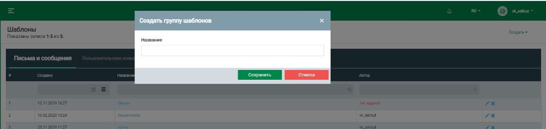 После нажатия откроется окно, в котором необходимо ввести название группы шаблонов.