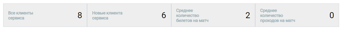 Билеты - общее количество билетов, предоставленных всем клиентам с помощью данного раздела на указанный матч;