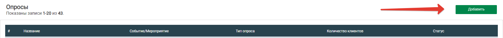 Для перехода к созданию опроса необходимо нажать на кнопку «Добавить», которая находится в правом верхнем углу.