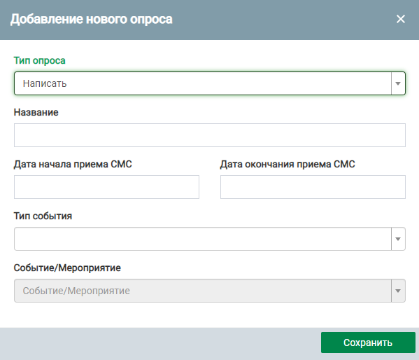 В поле «Тип опроса» из выпадающего списка выбираем нужный тип