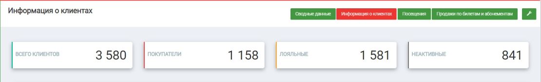 Вкладка «Информация о клиентах» содержит 4 информационных блока и 5 графиков