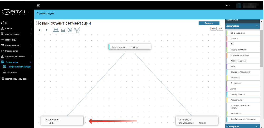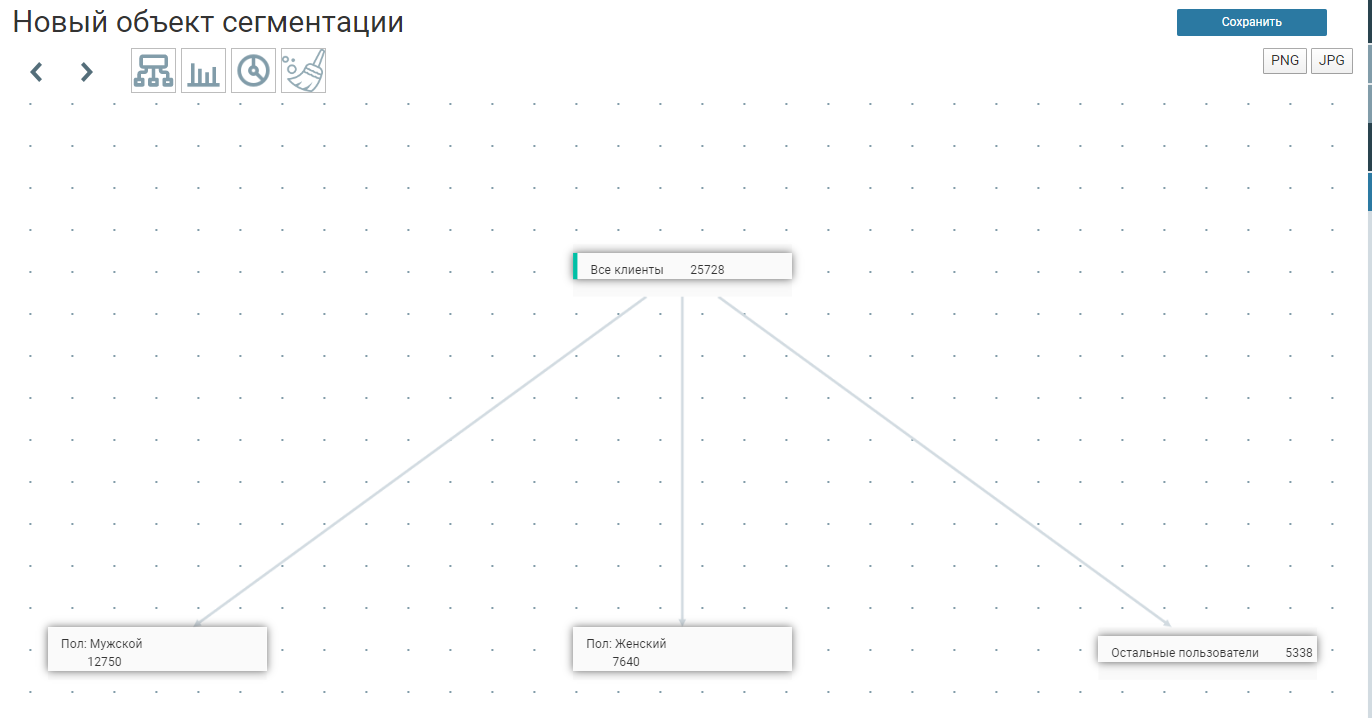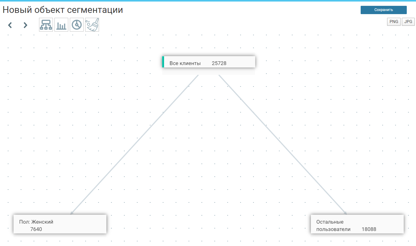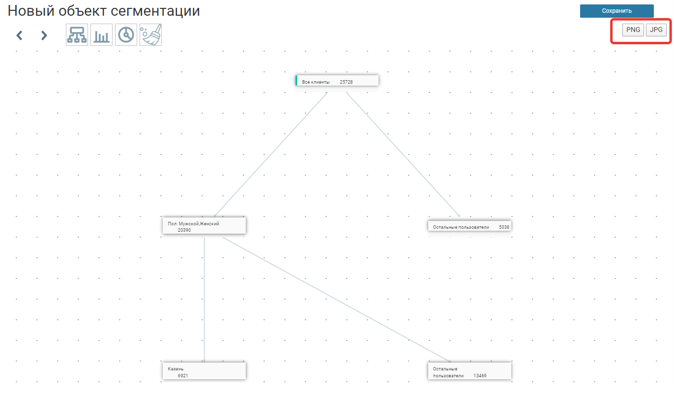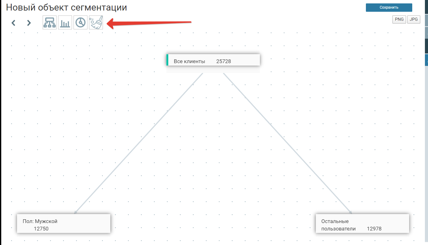 После того, как сегмент будет построен, его можно будет сохранить. Для этого следует нажать на нужный элемент, который нужно сохранить.