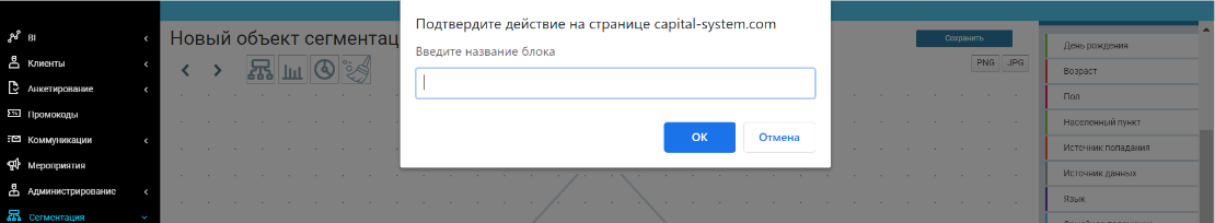 После нажатия на одну из этих кнопок система предложит ввести название сегмента и сохранить его: