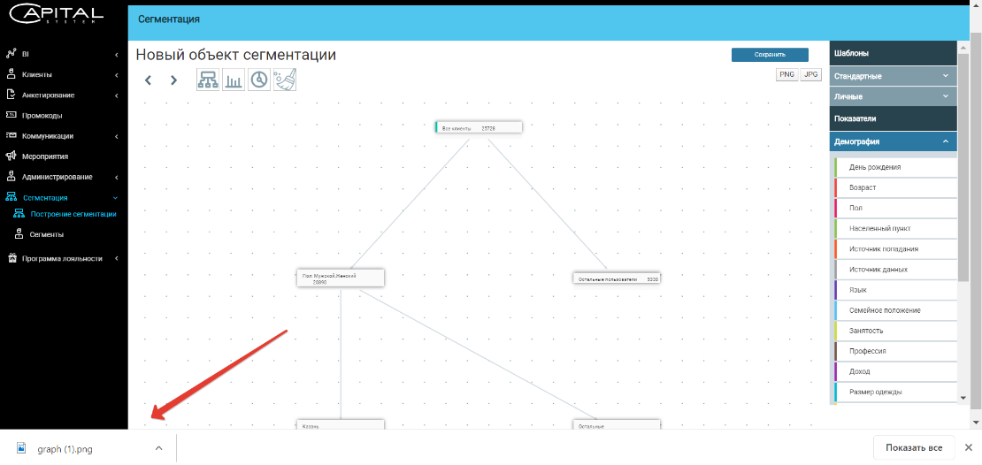 После чего построенный вами график сегментации будет скачан к вам на устройство.
