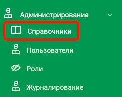 Модуль «Справочники» обеспечивает возможность хранения, создания, редактирования всех используемых в системе справочников. Чтобы посмотреть, какие бывают справочники, или добавить необходимую информацию в один из них, необходимо нажать на подраздел «Справочники», который находится в главном левом меню системы в разделе «Администрирование»: