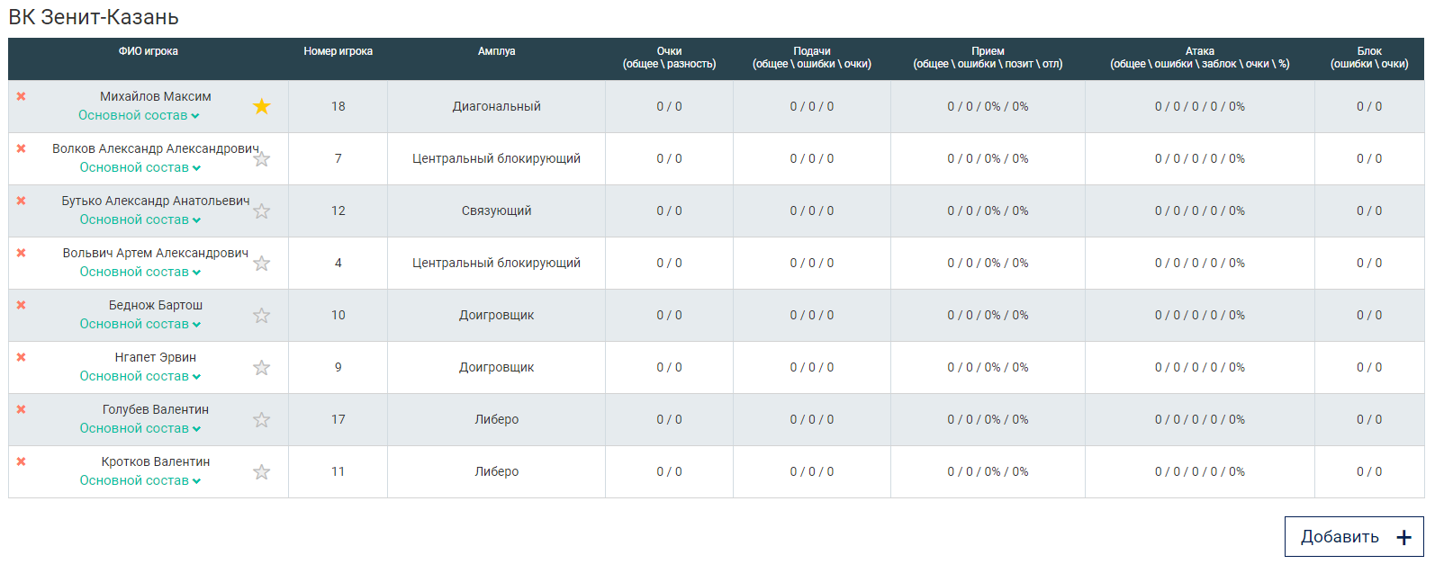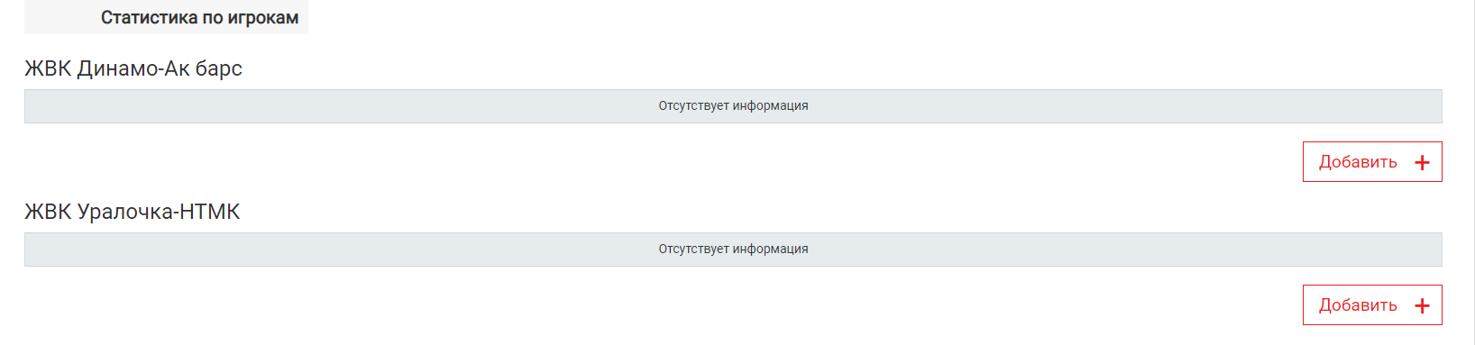 Для корректного начисления баллов болельщикам за их прогноз на стартовый состав матча необходимо указать игроков на вкладке «Спортивная статистика» раздела «Мероприятия» с помощью кнопки «Добавить».