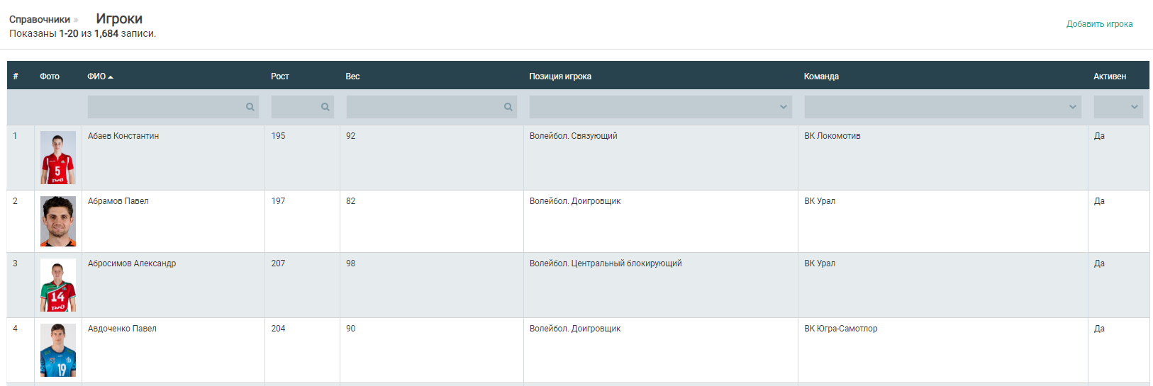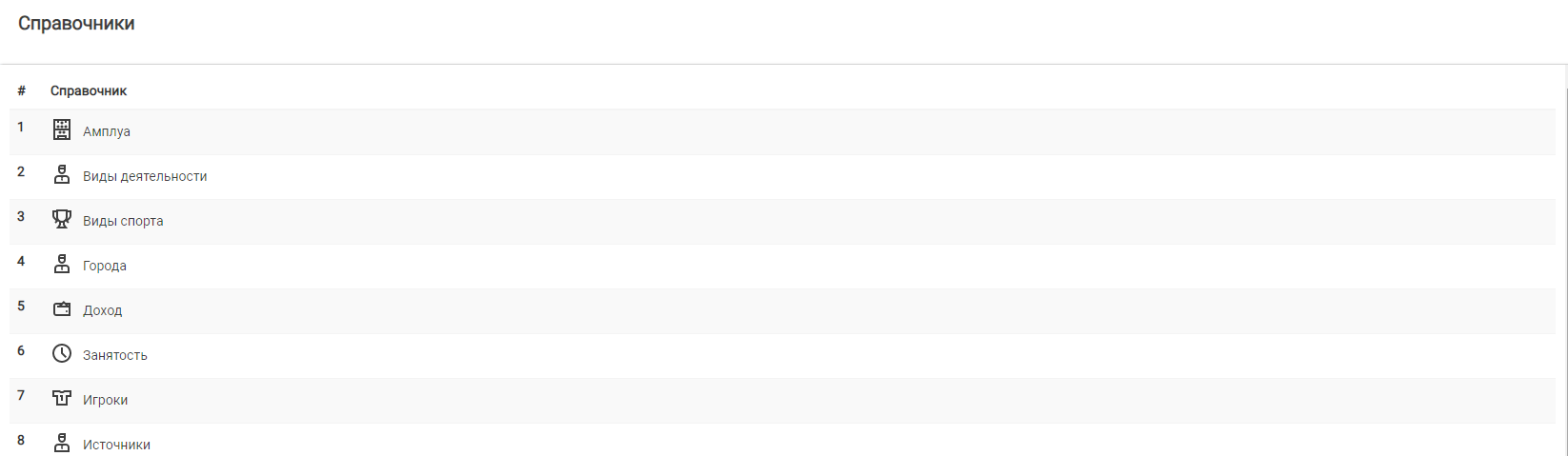 Для добавления игрока клуба, который будет отображаться в разделе «Команда», необходимо открыть раздел «Администрирование» и выбрать подраздел «Справочники». В открывшемся разделе необходимо выбрать поле «Игроки»