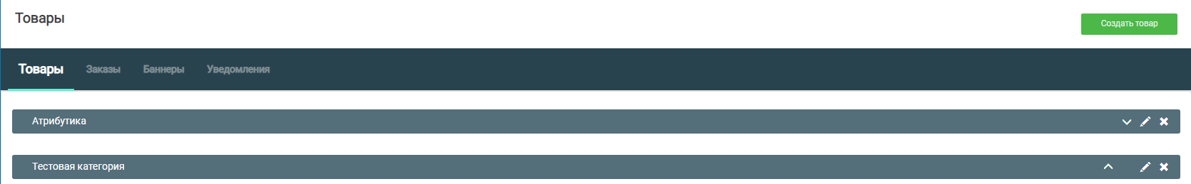 После создания категории необходимо нажать на кнопку «Создать товар».