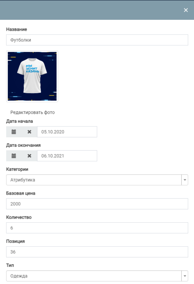 - Базовая цена (количество баллов, за которые болельщик может получить товар);
