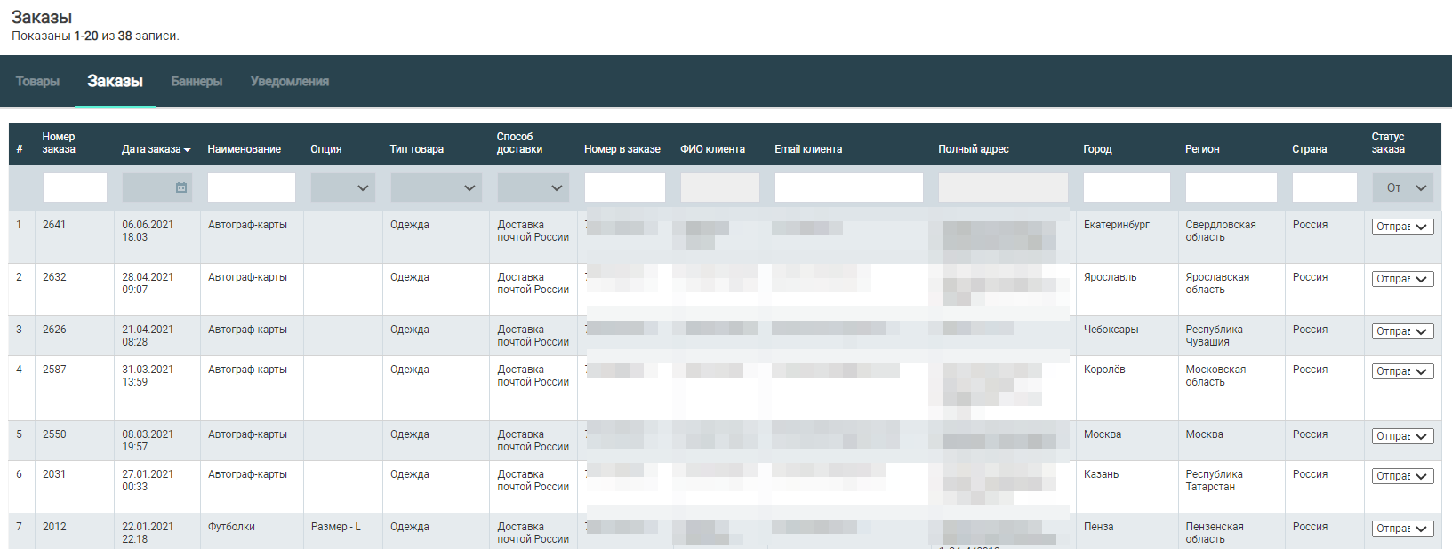 Для того чтобы болельщик клуба отслеживал статус своего товара, менеджеру клуба необходимо проставлять актуальные статусы в разделе «Заказы».
