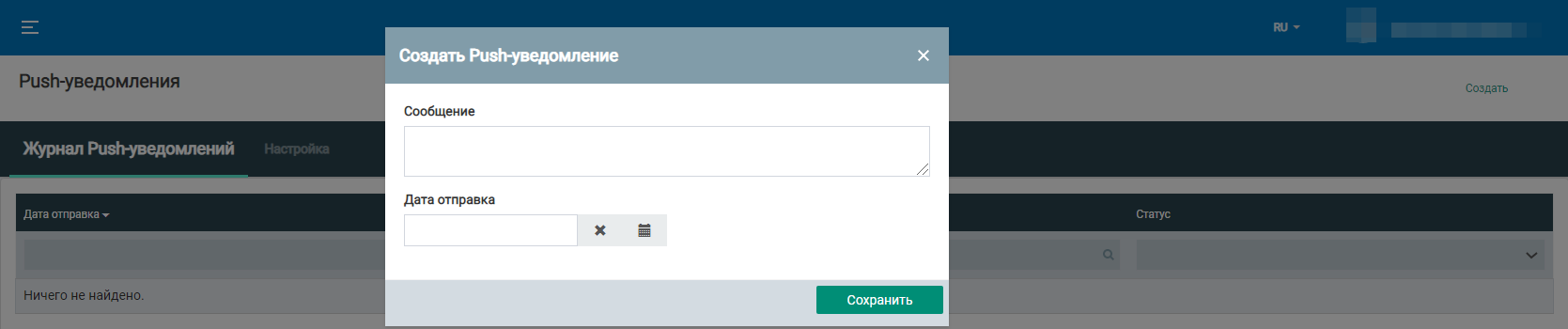 Важно! После создания Push-уведомления его невозможно изменить или удалить.