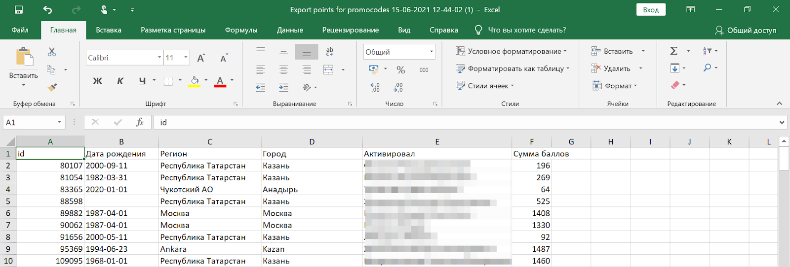 а после окончания загрузки его необходимо скачать. В файле экспортированные данные будут представлены в таблице,