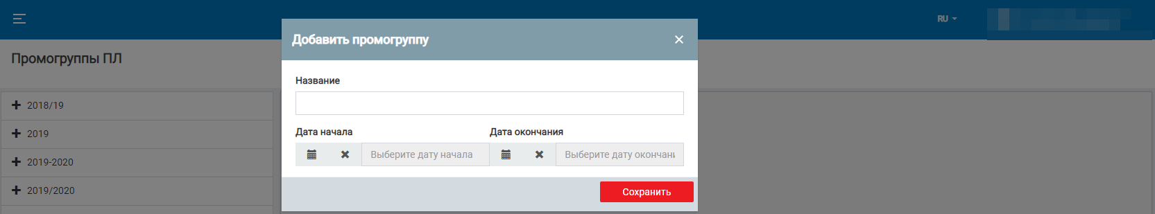 Для создания промокодов необходимо открыть раздел «Программа лояльности» - подраздел «Промокоды ПЛ».