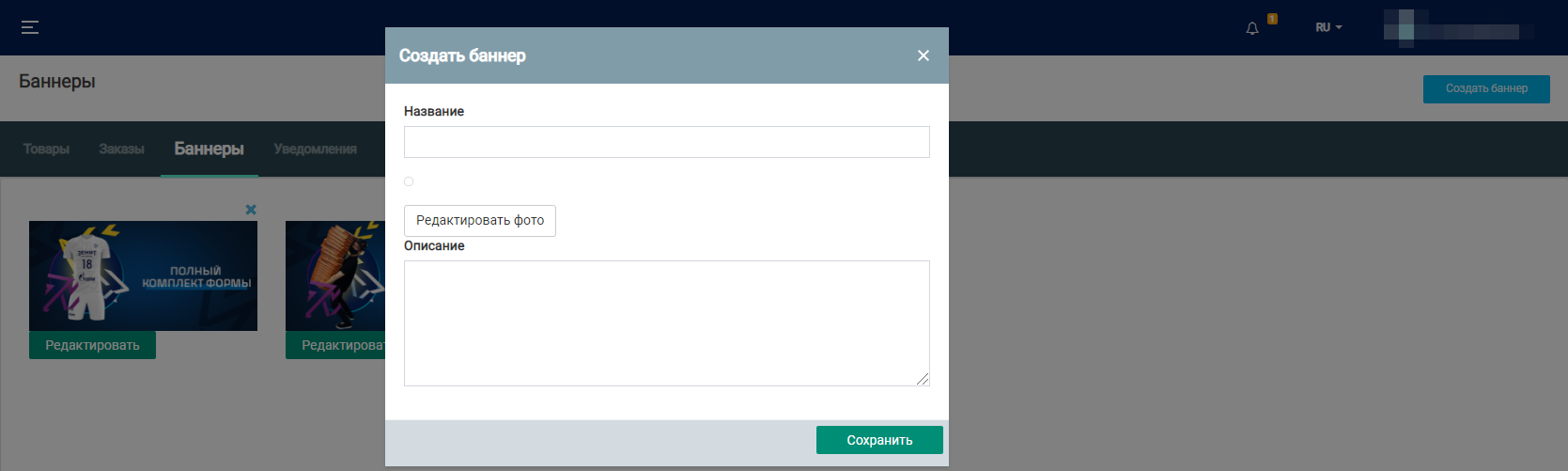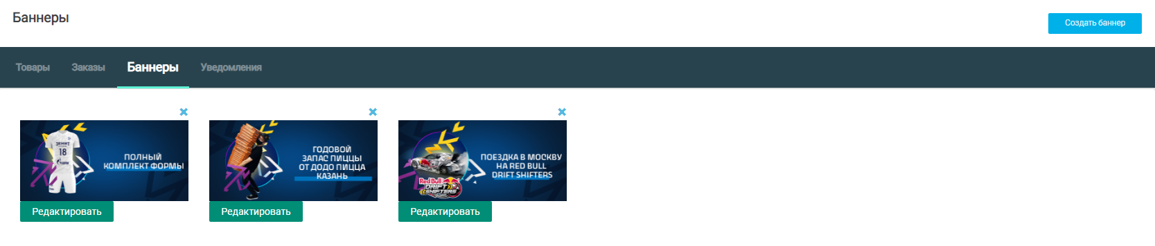 Для создания баннера, который будет автоматически отображаться в самом приложении (в шапке раздела «Магазин»), необходимо перейти в подраздел «Баннеры»,