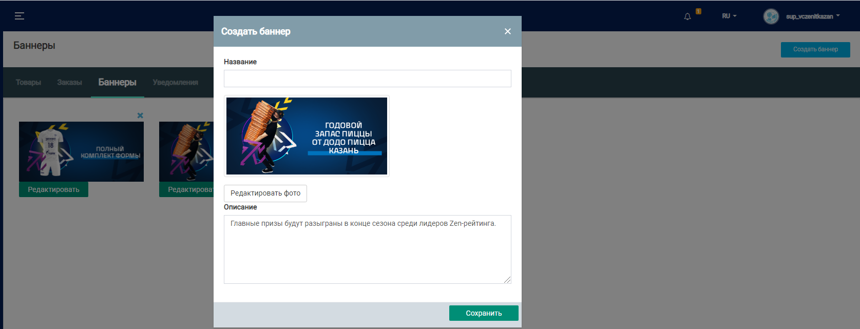 Для внесения изменений в уже созданный баннер необходимо выбрать кнопку «Редактировать», заменить нужную информацию и нажать на кнопку «Сохранить».