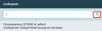 Сообщение – краткое описание выполненного пользователем действия. Список отображается в хронологическом порядке, начиная с более нового. Доступна сортировка по всем столбцам списка. В данном столбце также можно осуществлять поиск по нужному действию, для этого необходимо нажать на значок лупы в поле «Сообщение»: