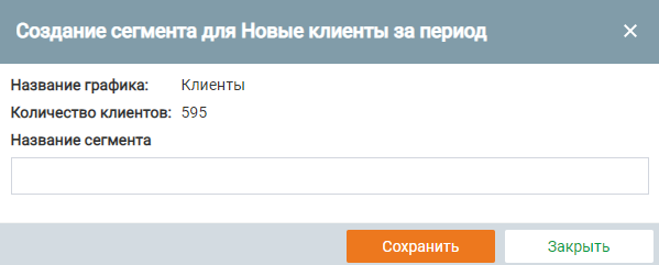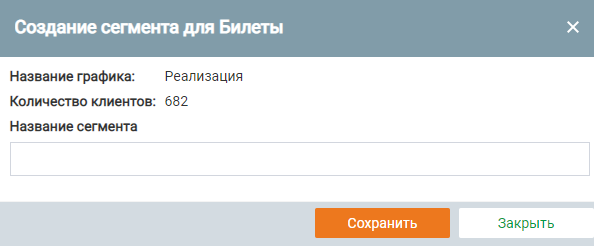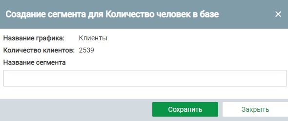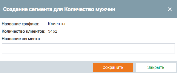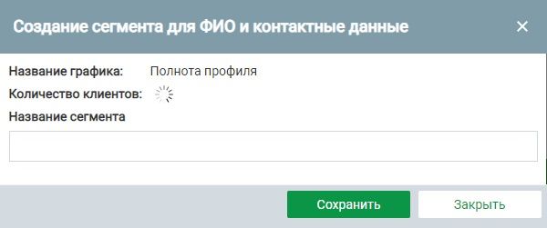 При выборе функции создания сегмента откроется следующее окно для сохранения, в котором необходимо нажать на кнопку «Сохранить». Сегмент будет отображаться в Списке сегментов в соответствующем модуле - «Сегментация».