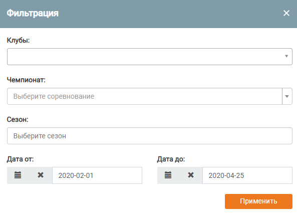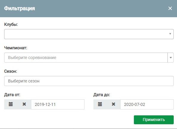 - чемпионат - вы можете выбрать соревнование, данные по которому хотите посмотреть