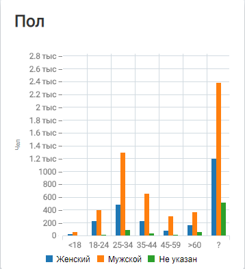 Для того, чтобы на графике отображались определенные критерий, следует нажать надпись, после чего график построится с учетом выбранного критерия, а для создания сегмента по выбранному критерию необходимо нажать на цветовое обозначение на диаграмме левой кнопкой мыши.