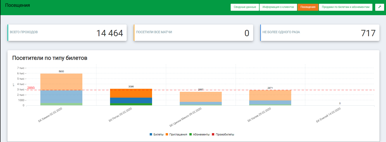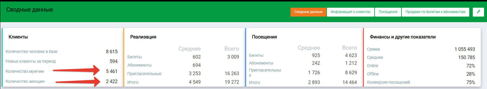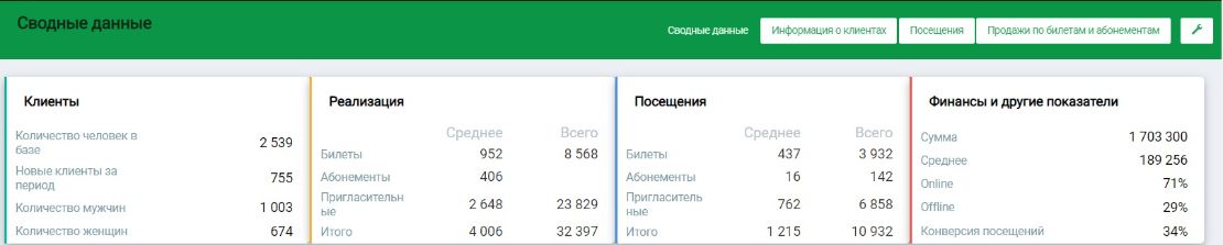 Для того, чтобы создать быстрый сегмент, например посещение болельщиков по билетам, следует открыть раздел «BI» и перейти к вкладке «Сводные данные».