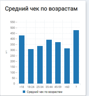 Для того, чтобы определить сколько покупок совершает болельщик того или иного возраста следует перейти в раздел «BI» и открыть вкладку «Информация о клиентах». После следует выбрать график «Средний чек по возрастам» . Далее следует выбрать нужный критерий и нажать правой кнопкой мыши для создания сегмента по указанному критерию.