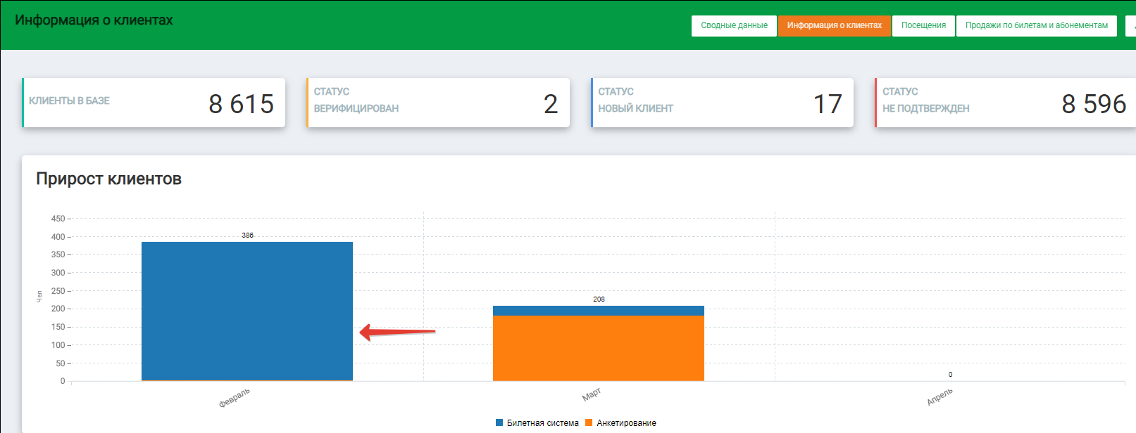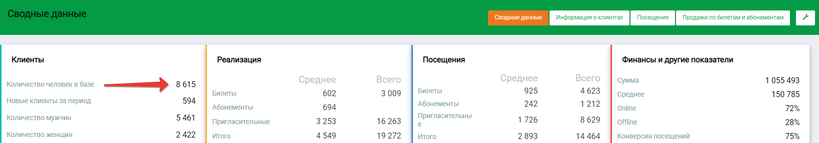 Для того, чтобы создать сегмент болельщиков, которые присутствуют в кабинете Capital System, следует открыть раздел «BI» и перейти к вкладке «Сводные данные» - «Клиенты».