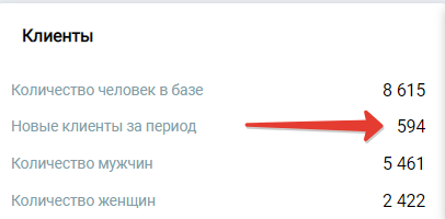 После чего следует нажать правой кнопкой мыши на количество новых клиентов за период в информационном блоке.